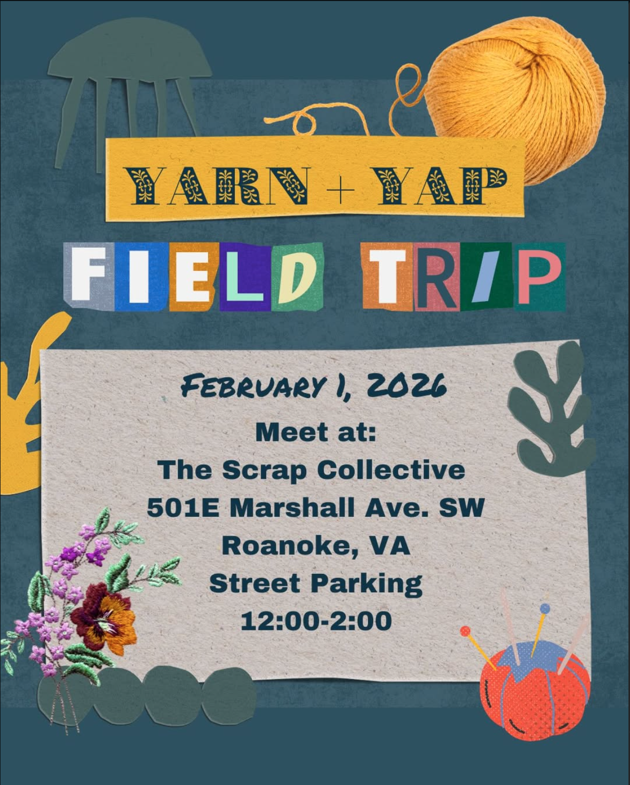 This Sunday, Yarn & Yap is taking a field trip! Grab your coffee from Second Cafe, then make the walk down a couple of blocks to Scrap Collective for a change of yarn and yapping environment! Image provided by Yarn & Yap 🤩. Multiple seating options, no cost to join us 💖